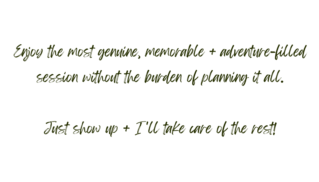 Adventure sessions are such a fun + unique way to remember this specific time in your life. It also gives you the opportunity + space to reconnect with the one(s) you love in a beautiful setting. It’ll be more than just pretty photos on a mountain, beach, forest, in your home, etc. All you need to do is show up + I’ll take care of the rest!